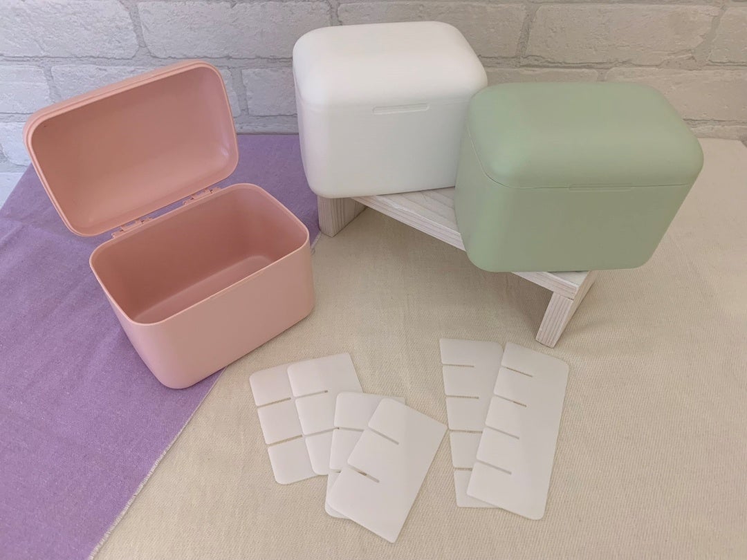 コスメやアクセサリーの収納におすすめで、丸いフォルムがかわいいコンパクトな収納ボックスです。取り外し可能な仕切り付で、収納アイテムに合わせて自由にレイアウトできます。ラインナップは人気のくすみカラー3色展開で、トレンド感があり人気のアイテムです。