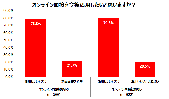 - オンライン面接経験者 「問題なく行えた」 66.5%、「今後も活用したい」 78.3%