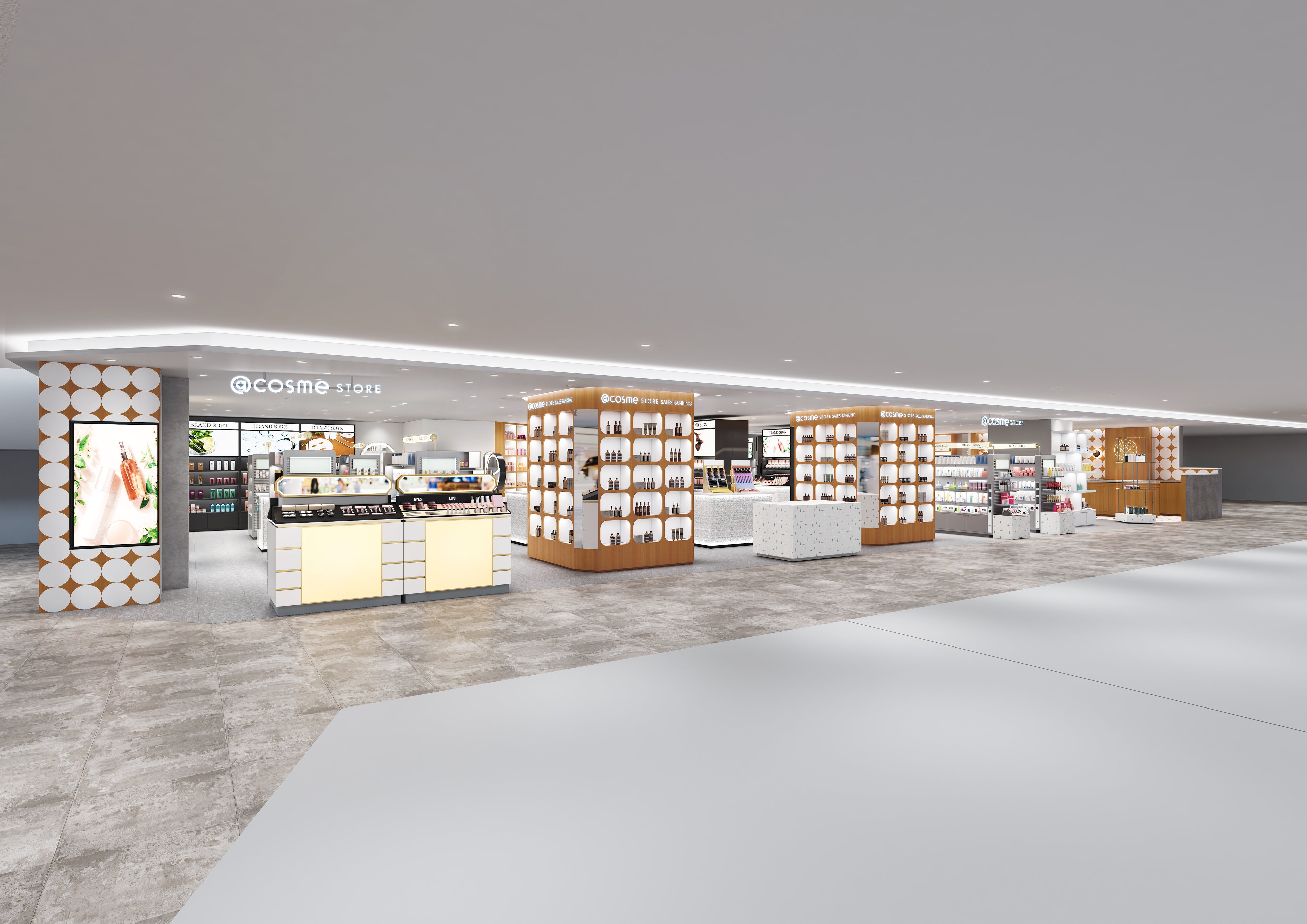 本リニューアルでは、2023年7月にアイスタイルグループに加わった化粧品専門店「シドニー テルミナ錦糸町店」の屋号を「@cosme STORE」に改め、「テルミナ2 ラ・ガール」から「テルミナ」4F(JR錦糸町駅南口)へ移転。売場面積は現在の約3倍となる約90坪(約298㎡)に増床し、開店から30年にわたり地域で愛されてきた「シドニー」の深いカウンセリング力と、@cosme STOREならではの回遊性の高い売り場づくりを融合させた錦糸町の日常に溶け込む新店舗に生まれ変わります。