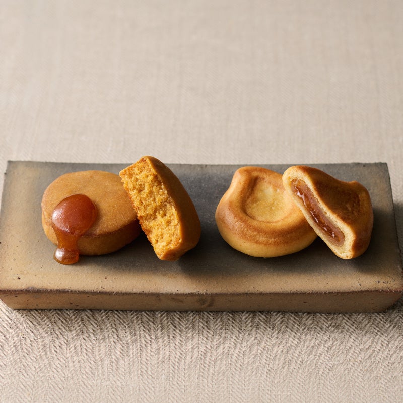 みたらし饅頭とみたらしマドレーヌを詰め合わせました。 みたらしの風味を生かした二つのお菓子の食感と仕立てをお楽しみください。違いを比べながら味わえる、お土産にぴったりの詰め合わせです。