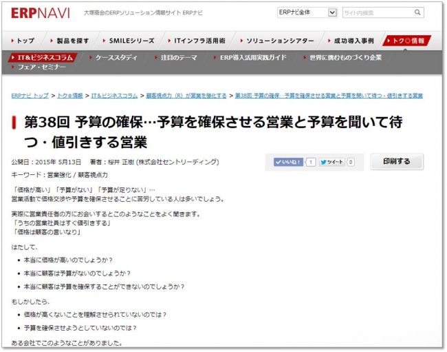 営業力強化をテーマにしたコラム「顧客視点力(R)が営業を強化する」にて、営業の価格交渉や予算を確保してもらうためにすべきことについて書かれた「予算の確保…予算を確保させる営業と予算を聞いて待つ・値引きする営業」を公開しました。