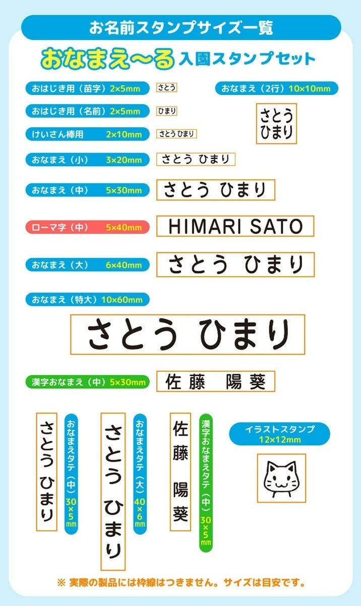 - 押すもののサイズや用途によって使い分けOK!さまざまなサイズのひらがなスタンプ