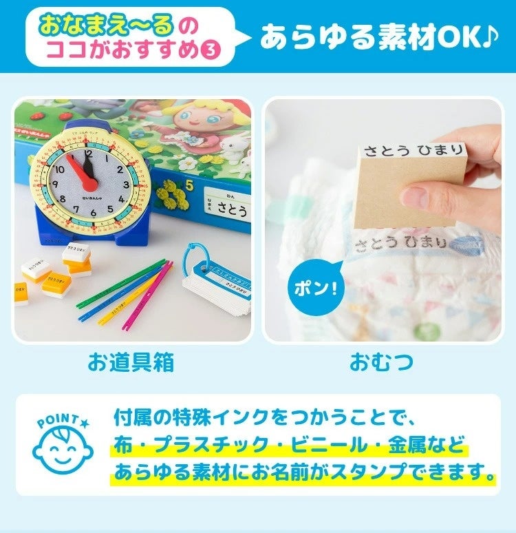 布・プラOK!保育園から幼稚園、小学校にあがってからもずっと使える、累計20万セット販売のお名前スタンプセット「おなまえーる」がリニューアル。