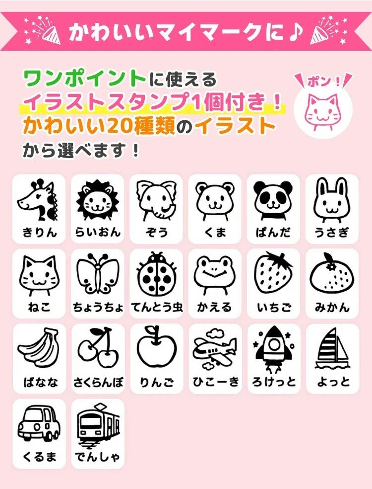 - ワンポイントに使える、かわいいイラストスタンプまでセット!
