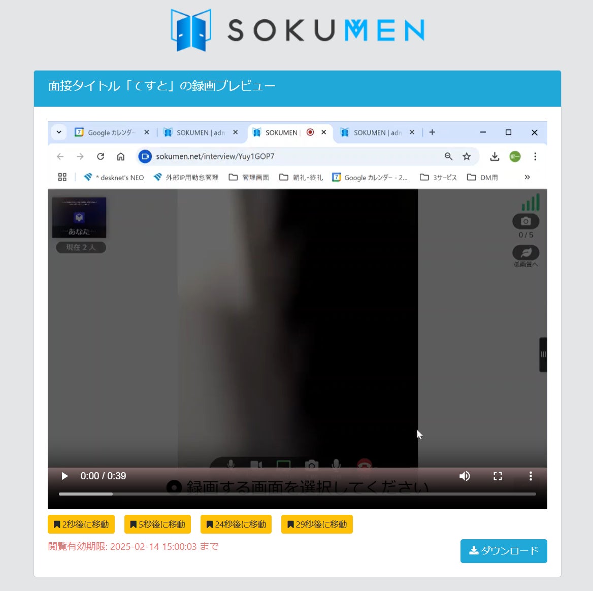 派遣・アルバイト採用をDXするWeb面接ツールSOKUMENの録画機能に録画タイムスタンプ機能を追加しました。後で録画を見返す際に指定した任意の時間までスキップ出来るマーカーが設置可能になりました。