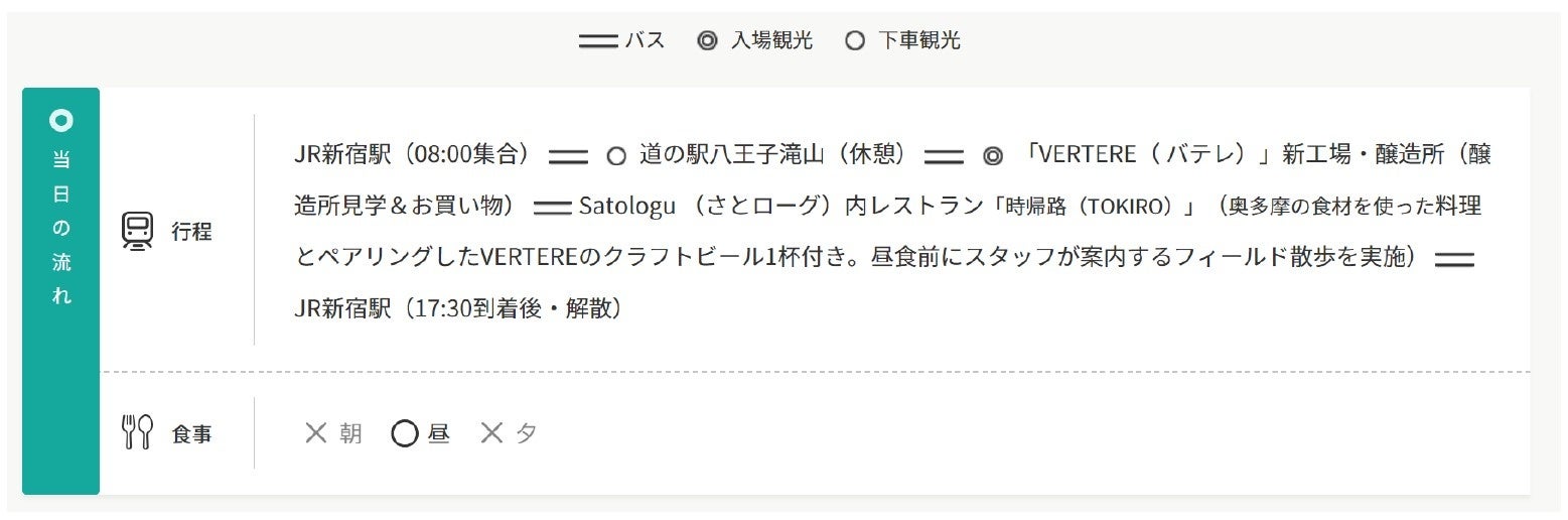 〇今回は「VERTERE」の醸造所見学と特別な体験、沿線ガストロノミー「レストラン 時帰路 TOKIRO」で奥多摩の食文化と素材を生かした特別なランチをご提供します。ぜひこの機会にご参加ください。