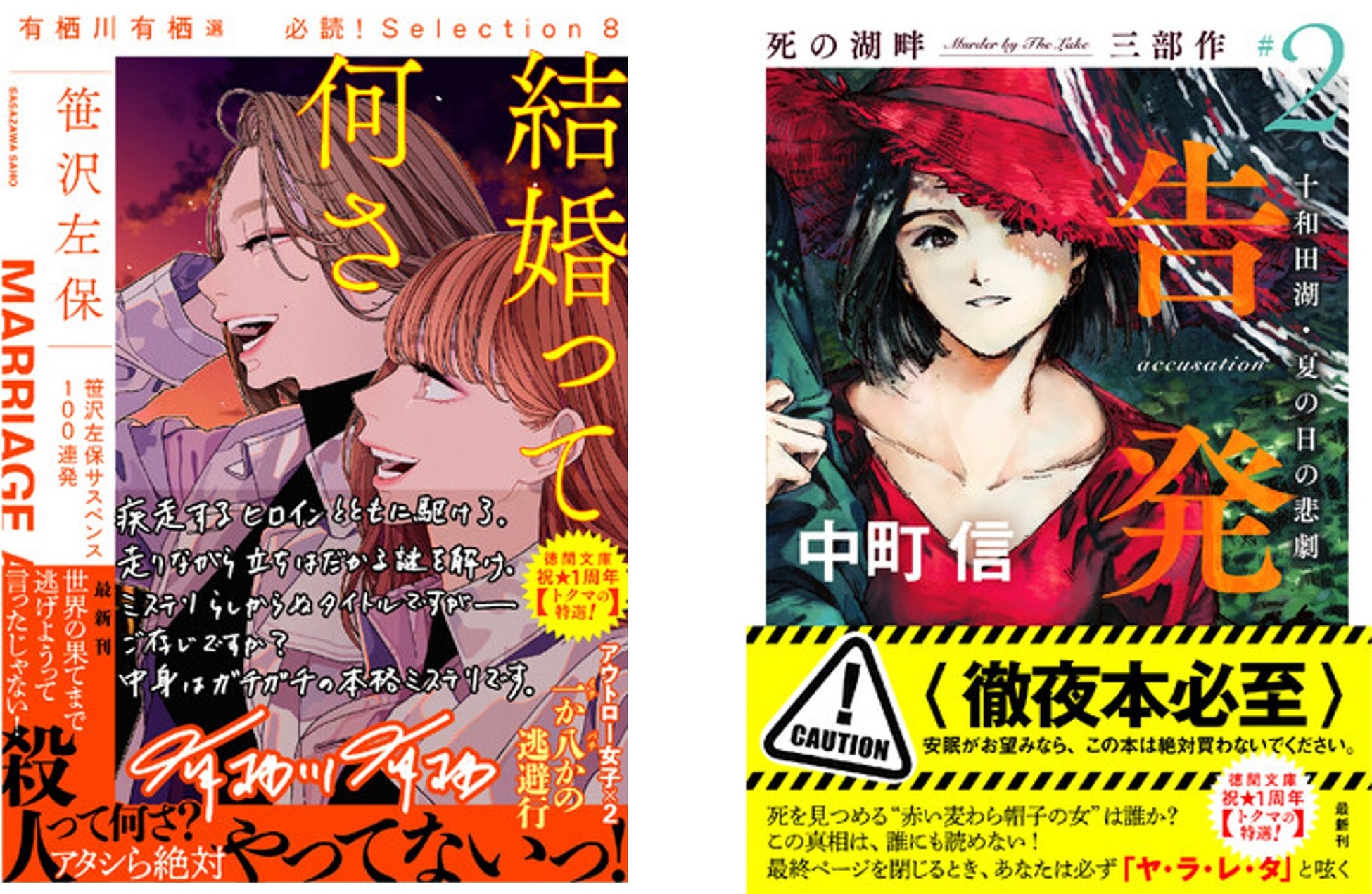 株式会社徳間書店(本社:東京都品川区上大崎 代表取締役社長:小宮英行)は、12月8日(木)徳間文庫の復刊レーベル「トクマの特選!」にて、笹沢左保『有栖川有栖選 必読!Selection8 結婚って何さ』、中町信『死の湖畔 Murder by The Lake 三部作#2 告発(accusation)十和田湖・夏の日の悲劇』を発売いたしました。