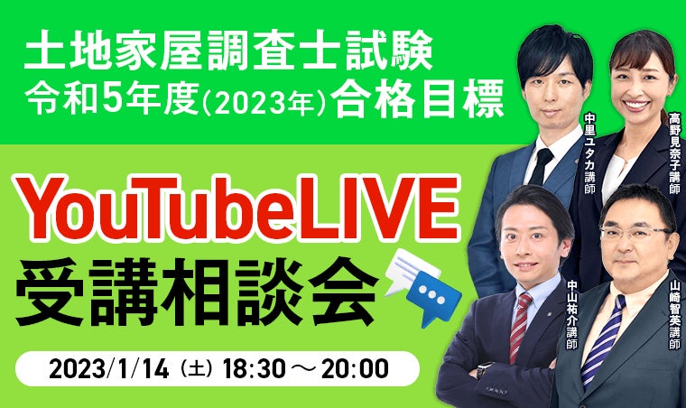 アガルートアカデミーでは,来年こそは合格を勝ち取りたいという受験生の方向けに2023/1/14(土)19:00~21:00にYouTubeLIVEで講師が受講相談会を実施します。