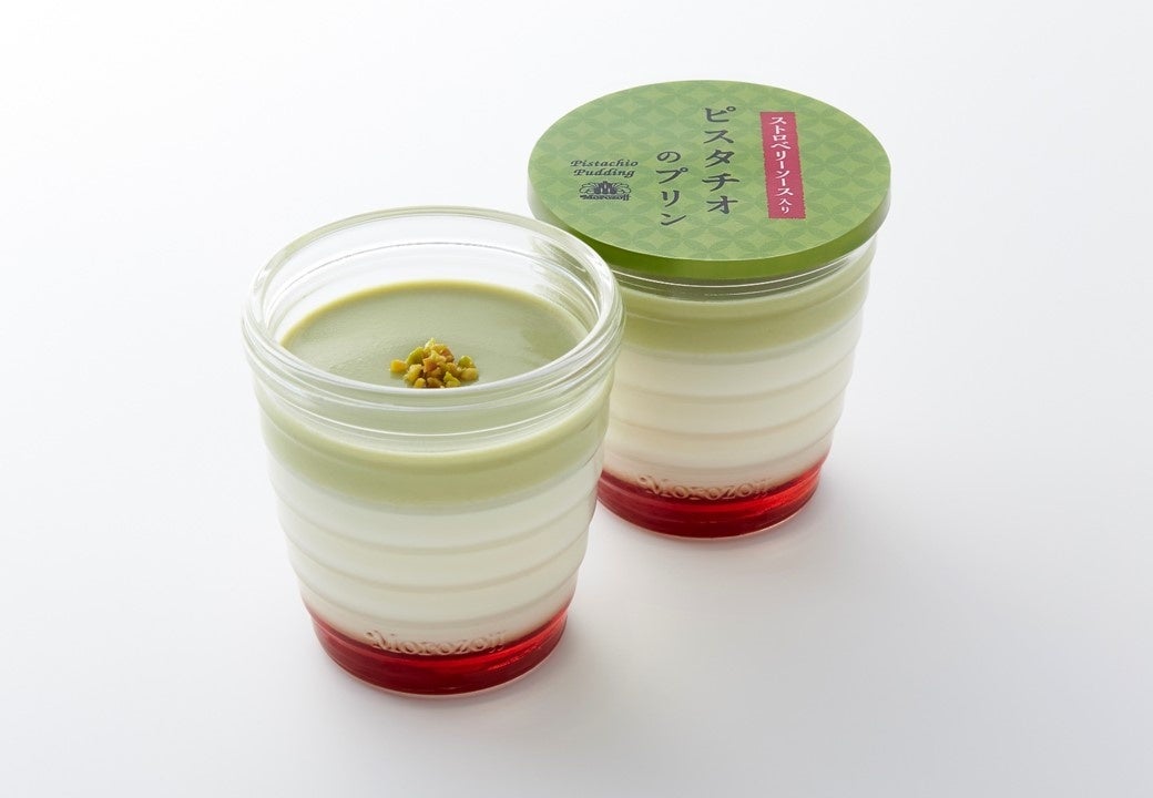 濃厚で香ばしいピスタチオのクリームと、まろやかな甘みでとろけるような食感のホワイトチョコレートプリンを重ねました。すっきりとした味わいのストロベリーソースや、トッピングのローストしたピスタチオの実が食感のアクセントとなった多層仕立てのプリンです。
