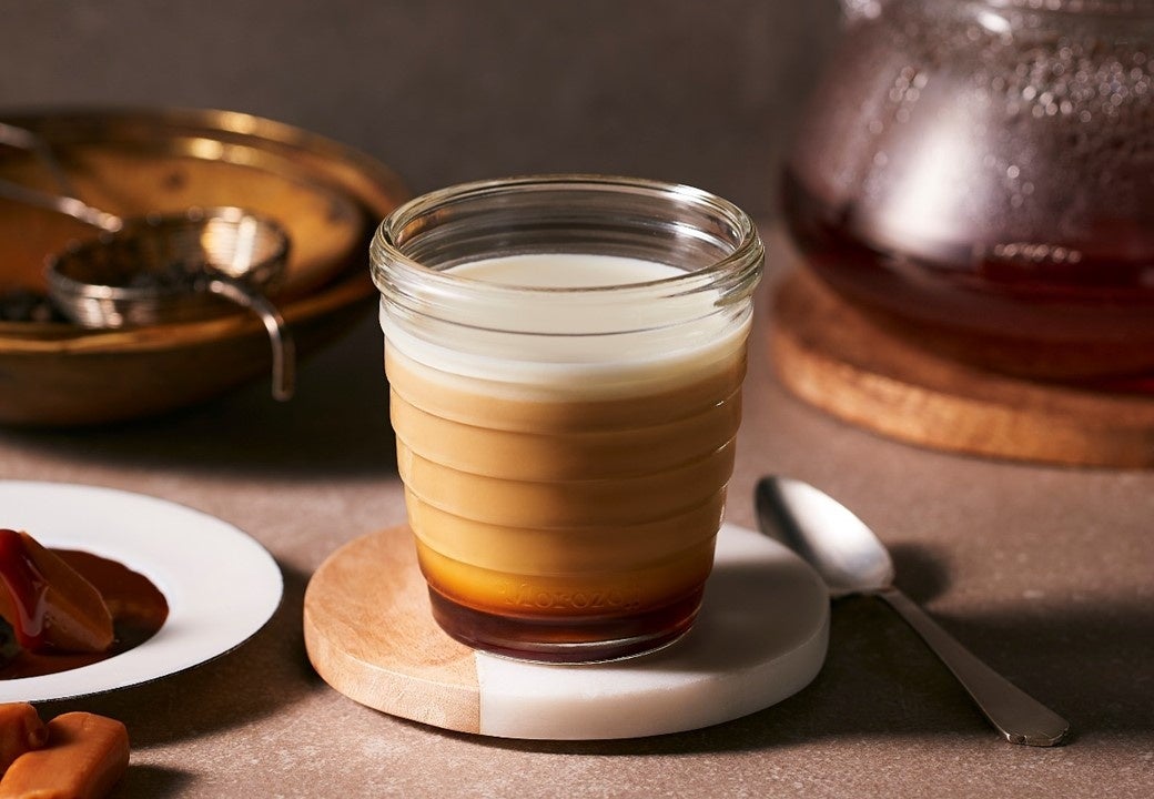 やさしい甘さのキャラメルプリンに、紅茶ソースを合わせました。紅茶香るキャラメルプリンと、とろける食感の生クリームゼリーに香り高いセイロンティーを使用したソースを合わせることで、まるでキャラメルミルクティーのような濃厚な味わいに。コク深いキャラメルの甘さをお楽しみいただける、新しいプリンの登場です。