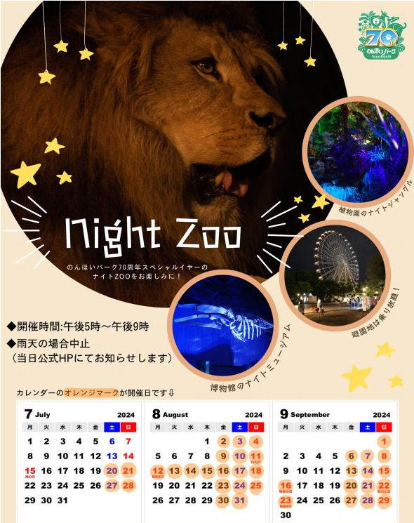 のんほいパーク ナイトZOO開催決定!【夜】×【動物園&博物館&植物園&遊園地&グルメ】…ドキドキワクワクの70周年スペシャルイヤーのナイトZOOをお楽しみに!