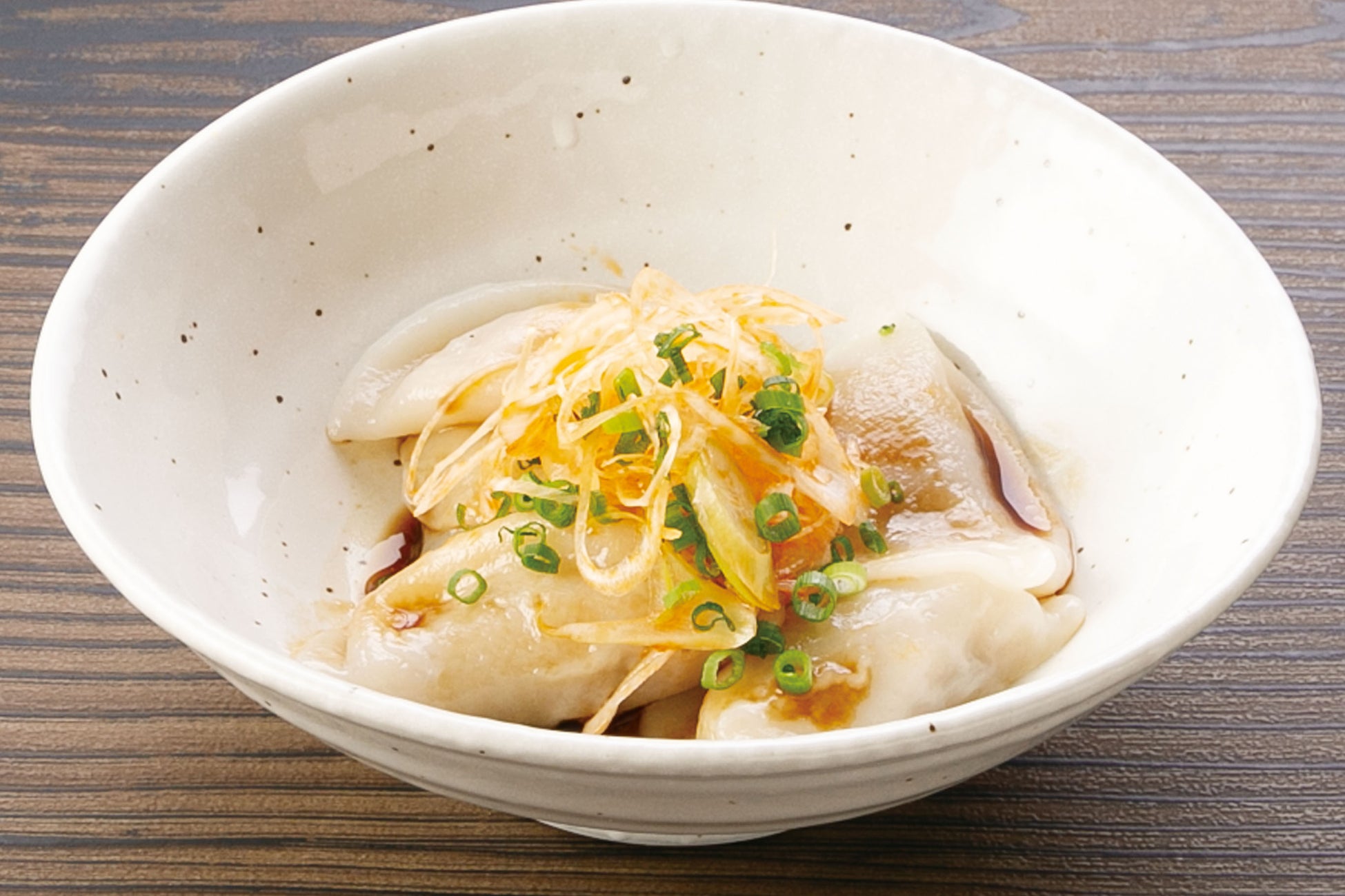 つるっと、もちもち食感!鶏の水餃子。ラー油で和えた、ねぎ