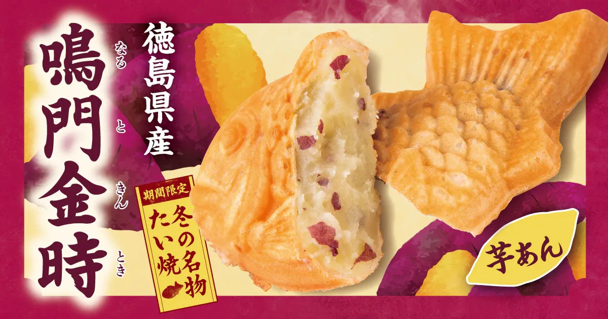 また、季節限定商品の中で大人気、薄皮たい焼 『鳴門金時 芋あん』 が今年も販売決定!オリジナルの鉄板に1枚1枚丁寧に生地を流し込んだ生地に、特製の 「芋あん」 をたっぷり入れて焼き上げます。 “ 徳島県産 鳴門金時 ” 本来の旨み・風味を生かすため、特製の 「芋あん」 は、甘さを抑え丁度良いバランスに仕上げています。