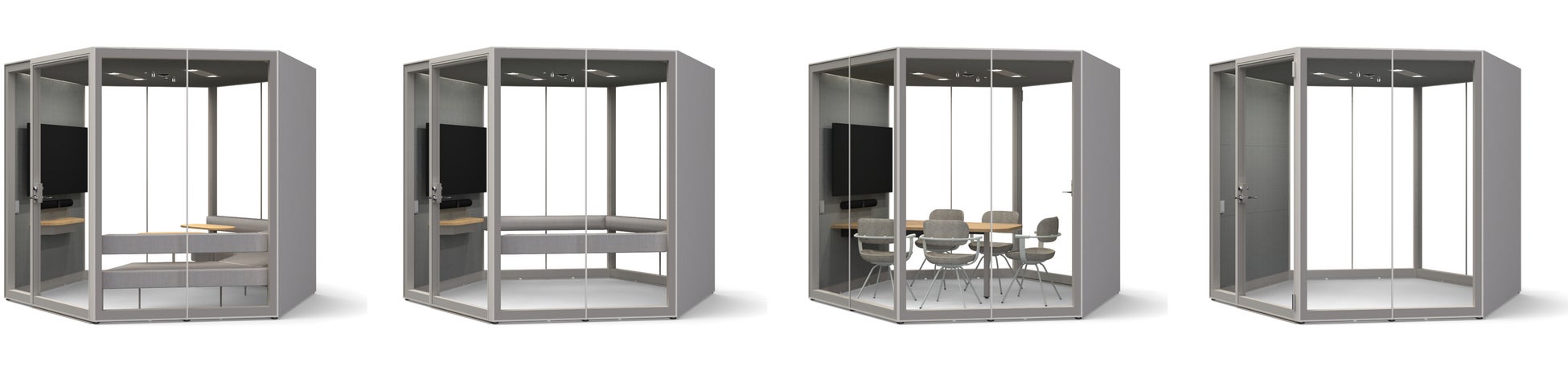 「ラウンジタイプ(ローソファ)」「ラウンジタイプ(ハイシート)」のほか、会議室不足をカバーする対面着座型の「テーブルタイプ」、使い勝手に合わせて内部の什器をアレンジできる「ブランクタイプ」の全4種のラインアップをご用意。働き方に応じて自由にインテリアをお選びいただけます。