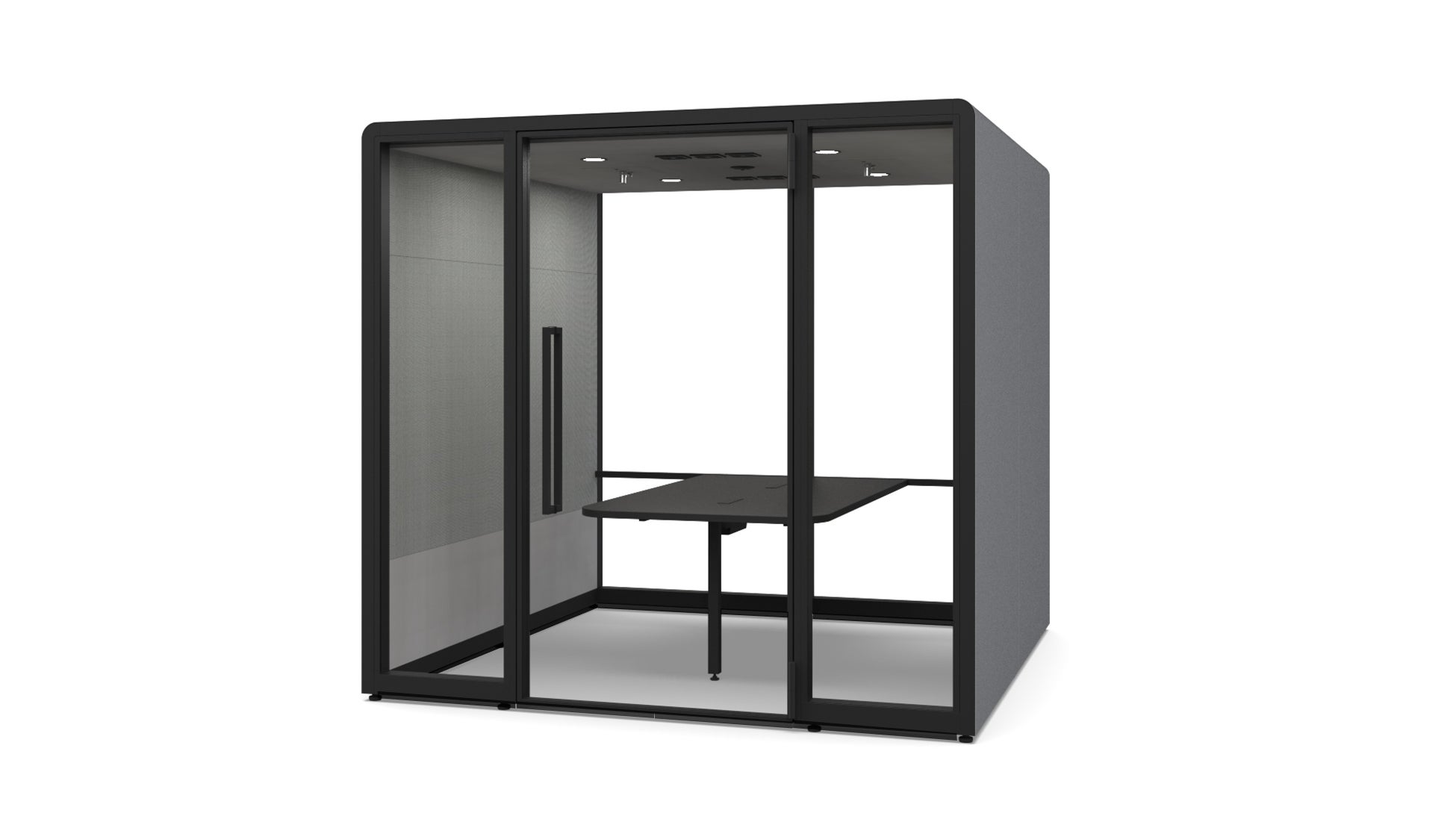 従来の個室ブースにはなかった最大6名用まで使用可能な約六平方メートルの大型ブースです。間仕切工事の際に発生する大掛かりな設備工事が不要で手軽に導入できます。1ブースあたりの組み立てにかかる所要時間は半日程度と、これまでのアドセルと同様に速やかな設置を実現。優れた遮音性と吸音性、スリムな外周デザインによるブース内の快適性はそのままに、多人数でもゆとりを持ってチームミーティングを行うことが可能です。