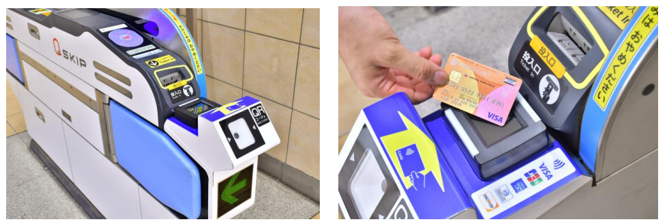対象ブランドのタッチ決済対応のカード(クレジット、デビット、プリペイド)や、同カードが設定されたスマートフォン等を、乗降車時に対象改札機の読取部にかざしていただくことで、普通旅客運賃(10円単位運賃)と同額にてご利用いただけます。