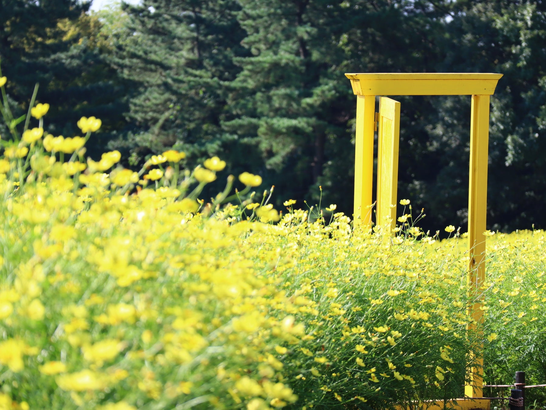 花畑の一部エリアではミックスのキバナコスモスもご覧いただけます。