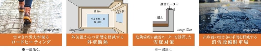 毎年訪れる厳しい冬さえも温かい快適な暮らしへ。煩わしい冬も快適に暮らせる、ロードヒーティングや消雪設備駐車場など、マンションならではの設備・仕様が暮らしを支えます。