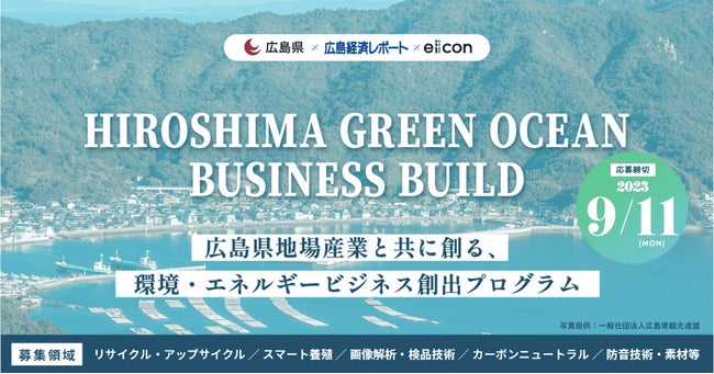 【広島県 × 広島経済レポート × eiicon】環境・エネルギー領域の新規事業創出を支援!『HIROSHIMA GREEN OCEAN BUSINESS BUILD』応募受付開始(2023年8月1日)