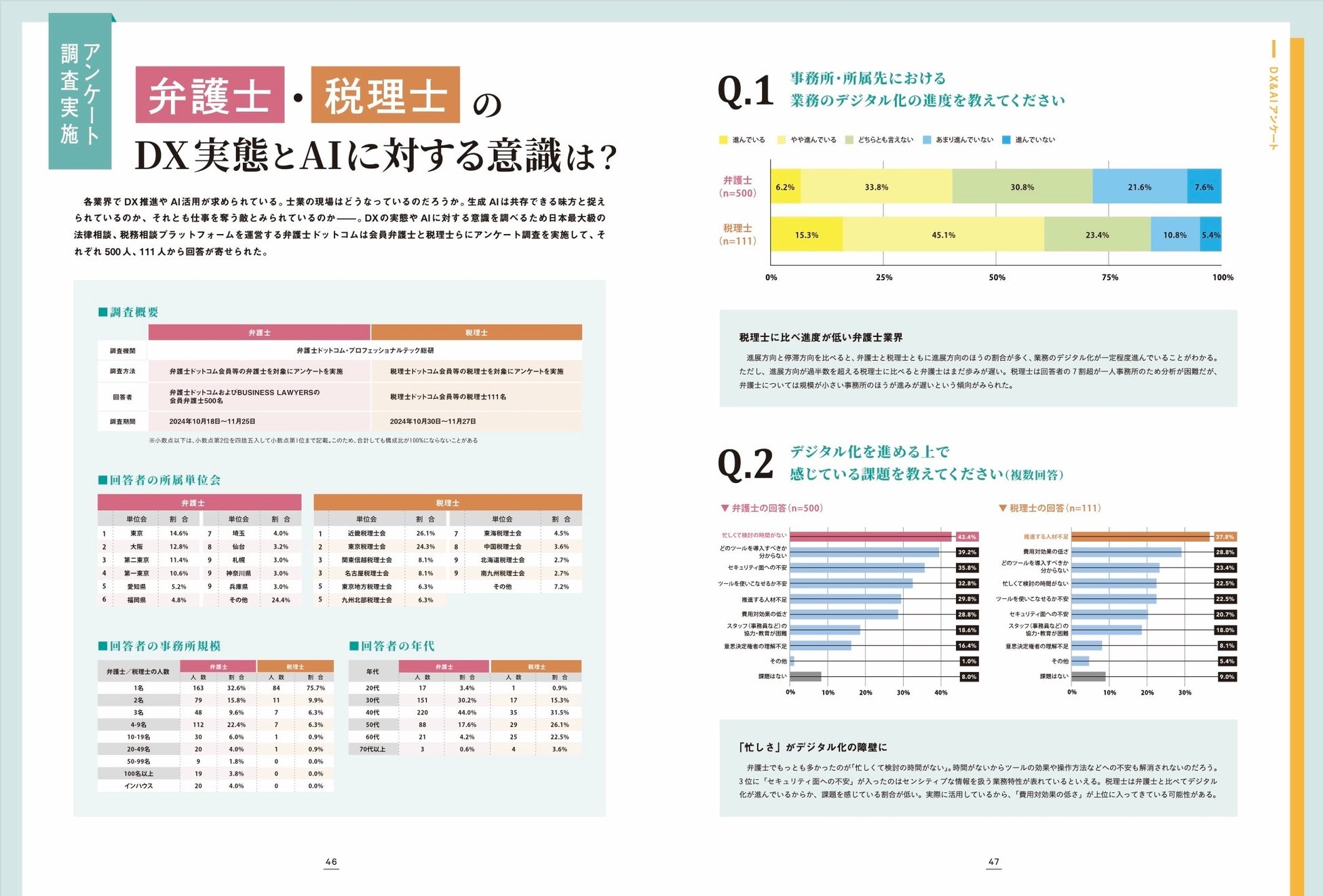 弁護士ドットコム株式会社(東京都港区、代表取締役社長兼CEO・弁護士:元榮太一郎、以下当社)は、「専門知」の新たな活用可能性を調査・発信するプロフェッショナルテック総研において弁護士・税理士・公認会計士・司法書士・行政書士・社会保険労務士・弁理士の「7士業」のAI活用やDXの見通しなどについて調査・分析した「士業DX白書2025」(全104ページ)を発刊・公表しました。