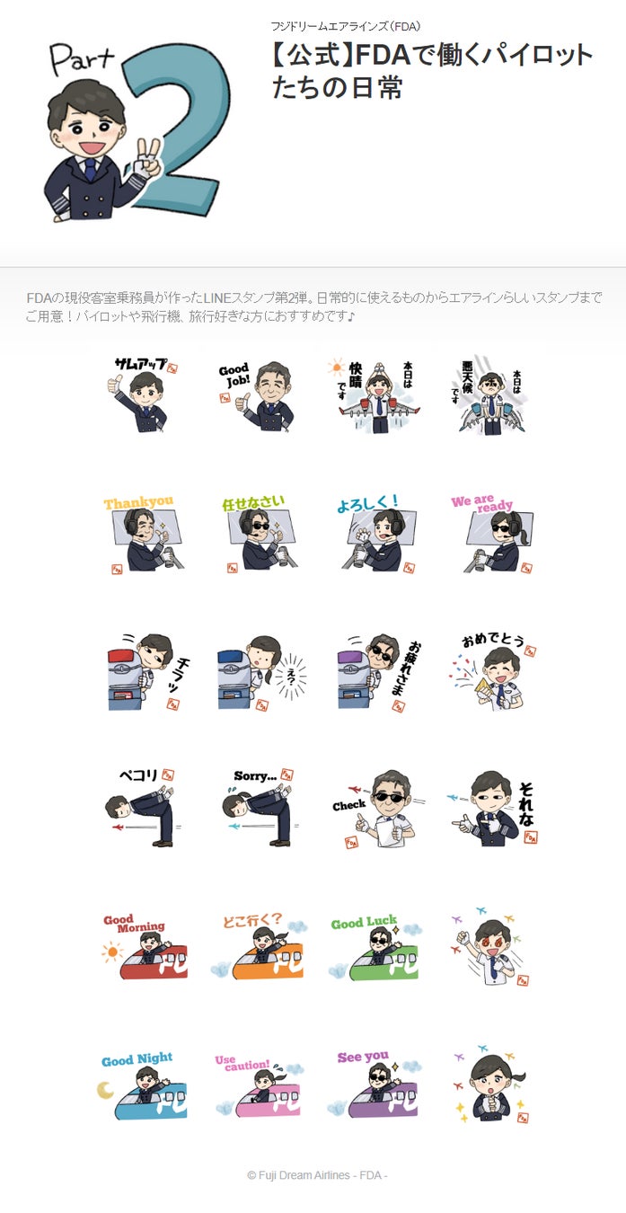 株式会社フジドリームエアラインズ(略称:FDA、本社:静岡県静岡市、代表取締役社長:楠瀬 俊一)は、公式LINEスタンプを新たに制作し、販売を開始いたしました。