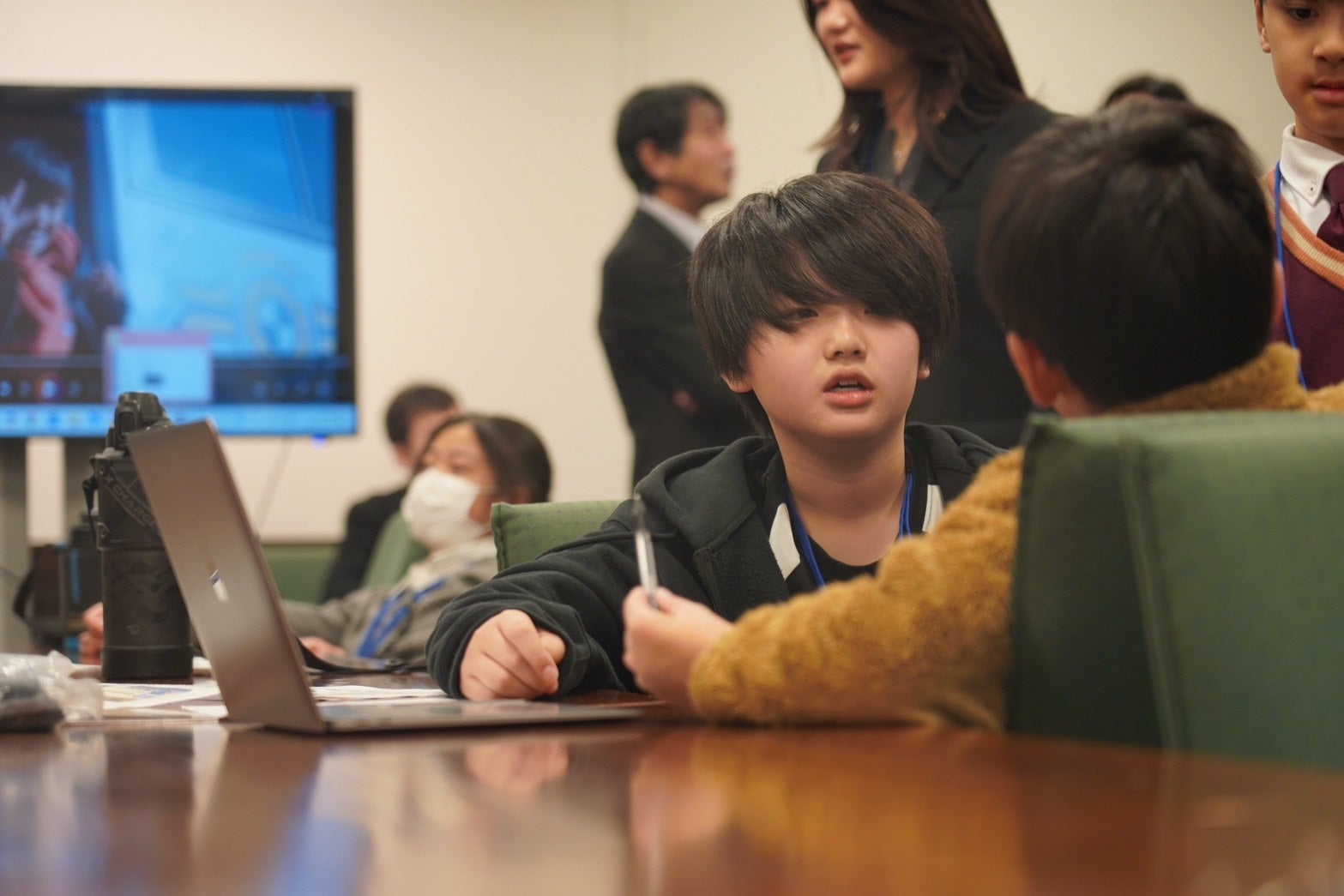 この日は、3日間の体験を重ねてきた子どもたちが、自分たちの言葉と考えをもとに、3つのチームに分かれ、長崎知事へ直接プレゼンテーションを行いました。プログラムの集大成となる一日です。