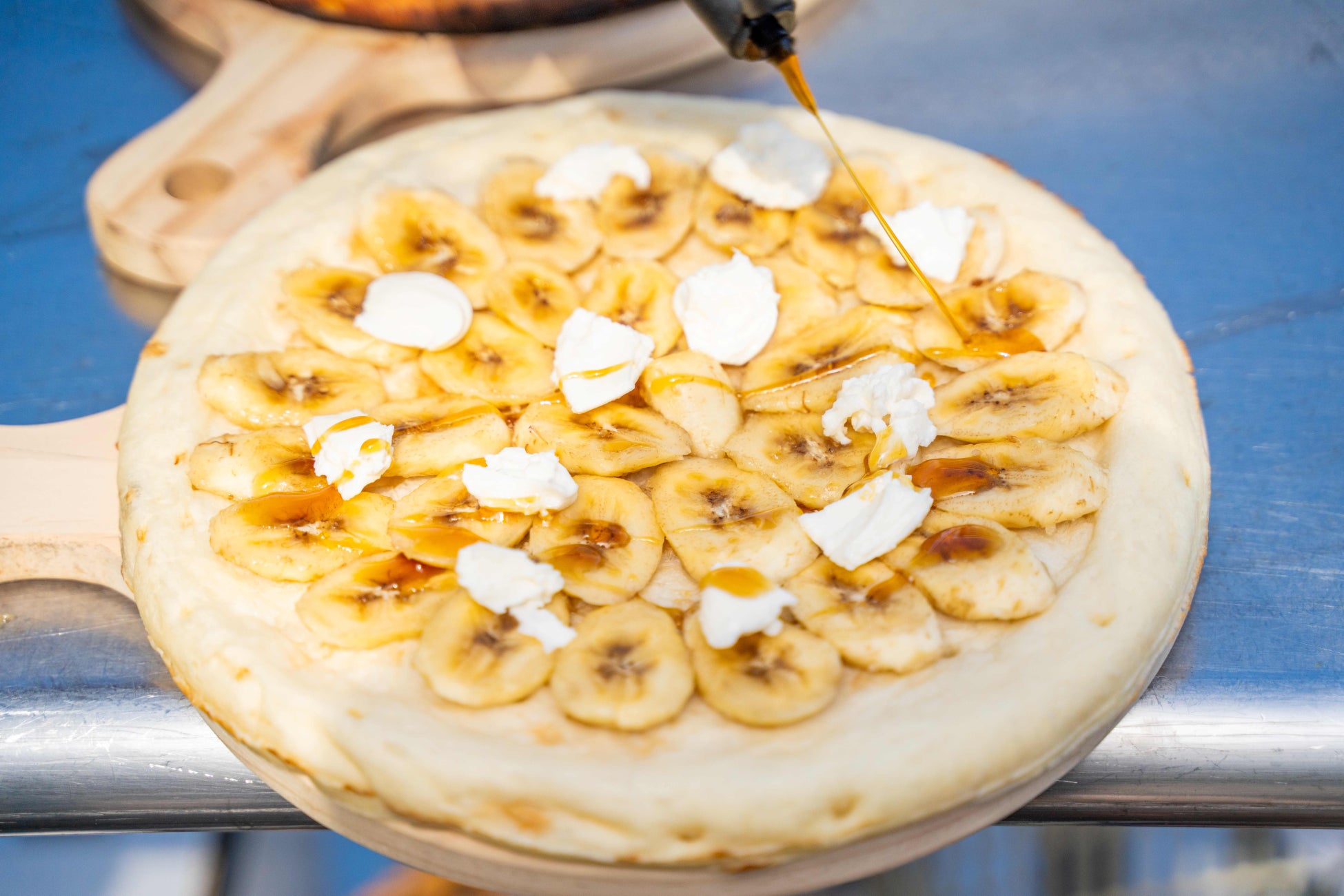 さらに、アレンジメニューとして、地元の野菜やハムを使用したホテル特製ピザをご用意。スタッフが手作りしたピザ窯で土佐備長炭を使って焼き上げるピザには、旬の野菜をたっぷりトッピング。炭火で香ばしく焼き上げられたパリッとしたピザ生地と高知県産のフレッシュな野菜との絶妙なコラボレーションが楽しめます。その他、芸西村の100年フードでもある白玉糖とバナナを使ったスッキリした甘さが特徴のデザートピザもご用意します。土佐備長炭で焼き上げる土佐の味を存分にご堪能ください。