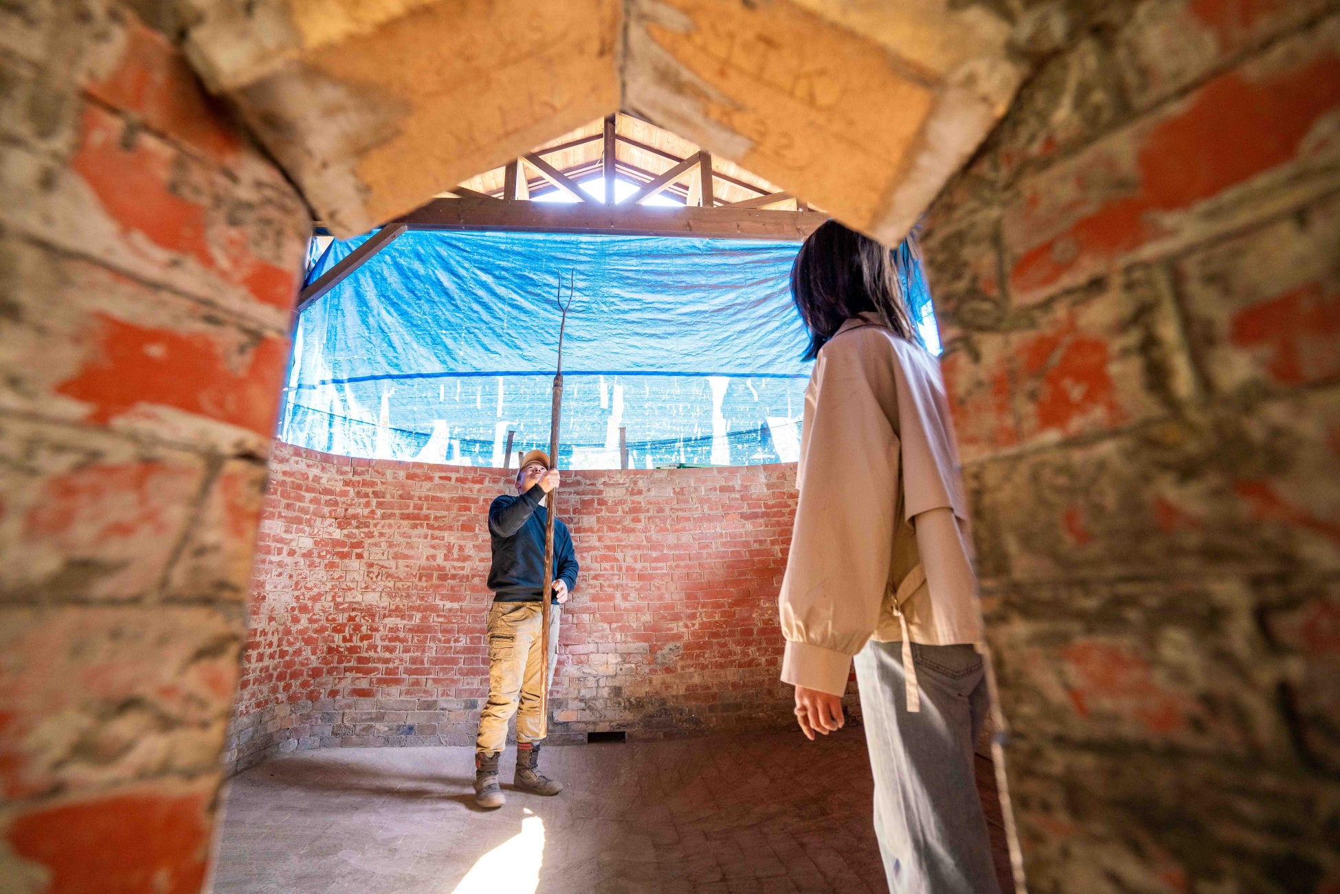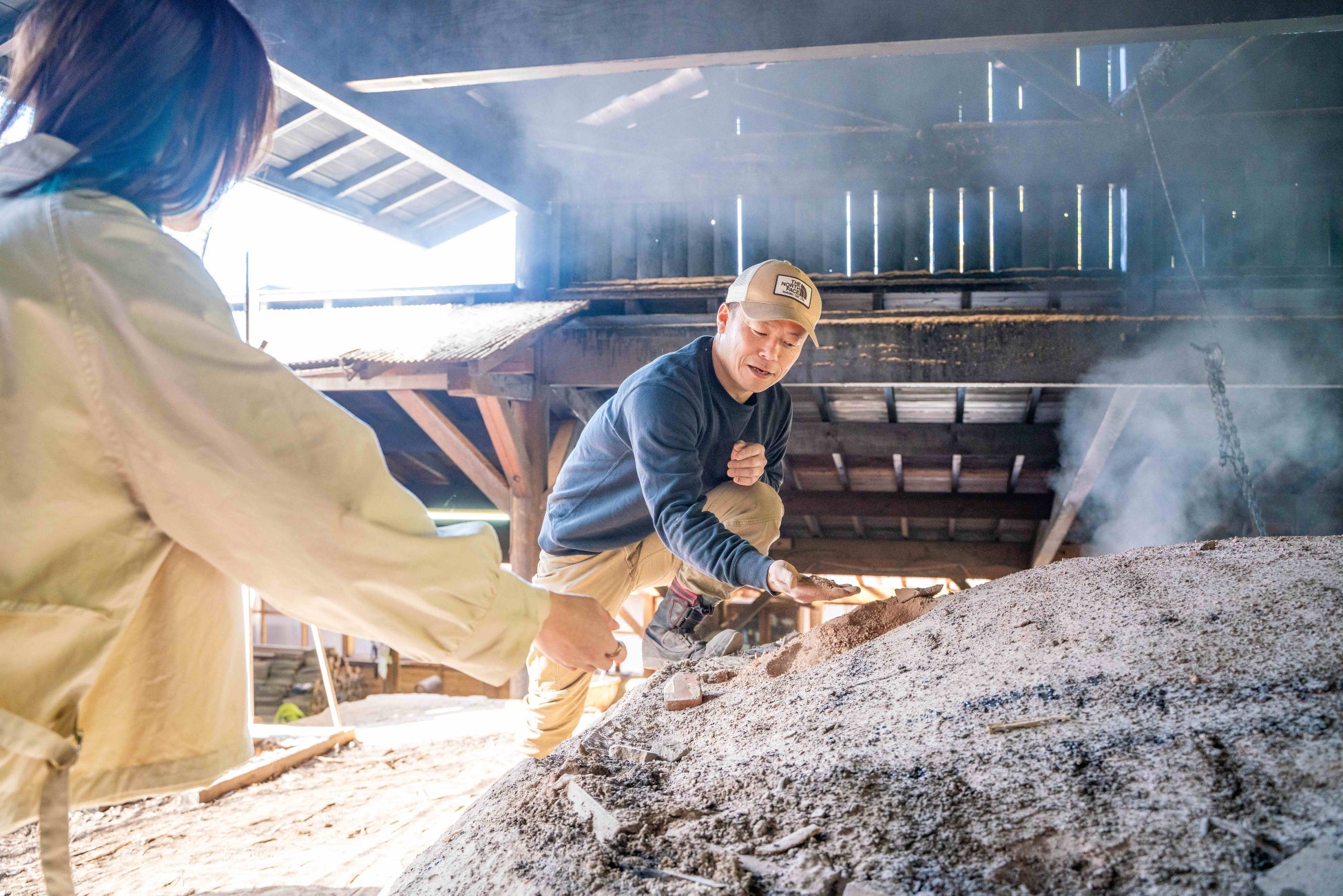 現在製造中のもう一つの窯も見学可能で、普段見ることができない窯の中に入り、どのように原木がくべられるのかを学びます。
