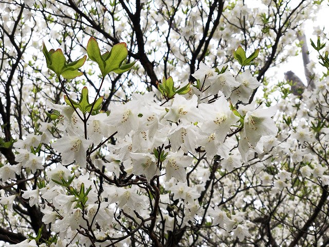 ゴヨウツツジ(五葉躑躅)は枝先に5枚の葉が輪生状につくことからその名で呼ばれ、別名は「シロヤシオ」。5月〜6月にかけて大木に一面に咲き誇ります。マウントジーンズ那須は日本最大級のゴヨウツツジ群生地となっており、約3万本が群生。全国でもこの規模の群生地は稀です。