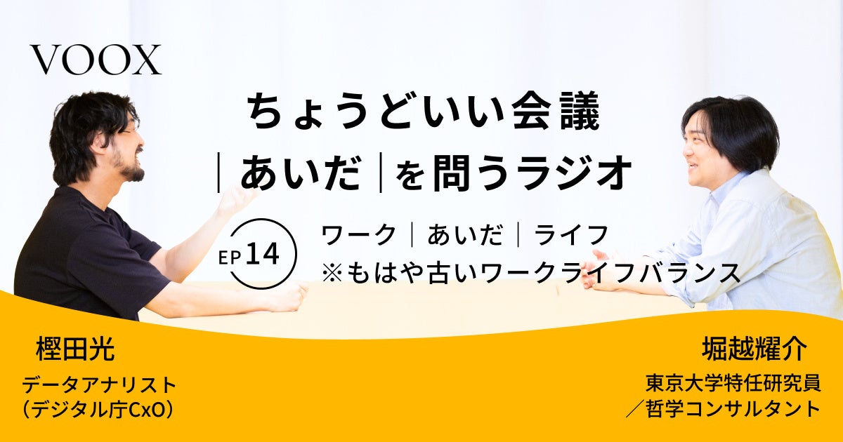 ちょうどいい会議|あいだ|を問うラジオ『Ep14: ワーク|あいだ|ライフ ※もはや古いワークライフバランス』音声教養メディアVOOX/Spotifyにて、配信開始!