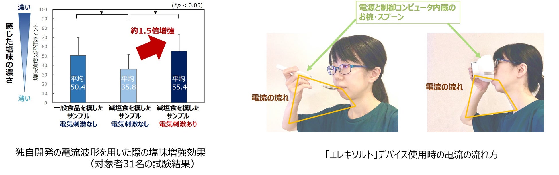 ~おいしく生活習慣の改善!世界初※1の電流波形を搭載した新たな「エレキソルト」デバイス~電気の力で、減塩食の塩味を約1.5倍※2に増強するスプーン・お椀を開発