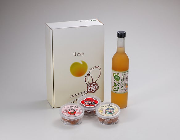 みさと梅姫シリーズをひと箱に詰め合わせた、梅干しと濃縮タイプ梅ジュースのセットの商品です。