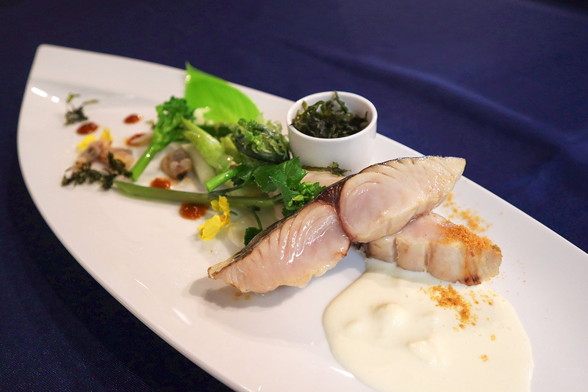 福岡産 鰆のロースト 浅利のクリームと福岡有明のりの風味