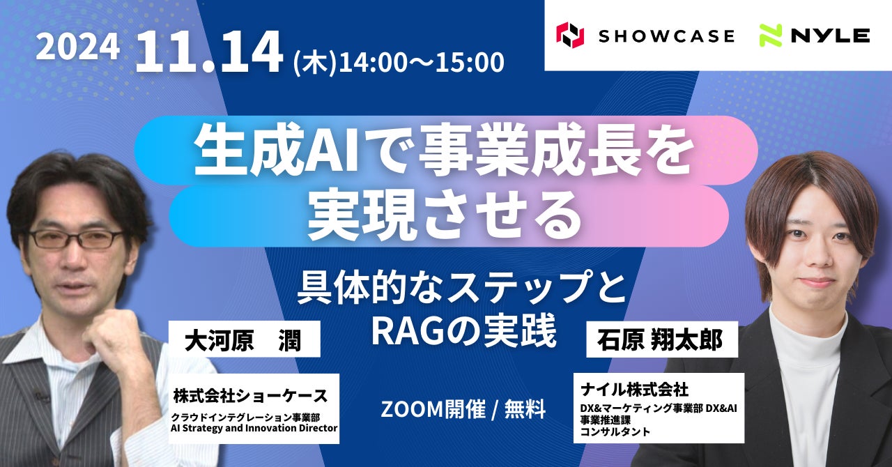 企業と顧客をつなぐDXクラウドサービスを展開する株式会社ショーケース(東京都港区、代表取締役社長:平野井順一、証券コード:3909、以下ショーケース)は、ナイル株式会社(東京都品川区)と共同で「生成AIで事業成長を実現させるための具体的なステップとRAGの実践」と題したセミナーを開催いたします。