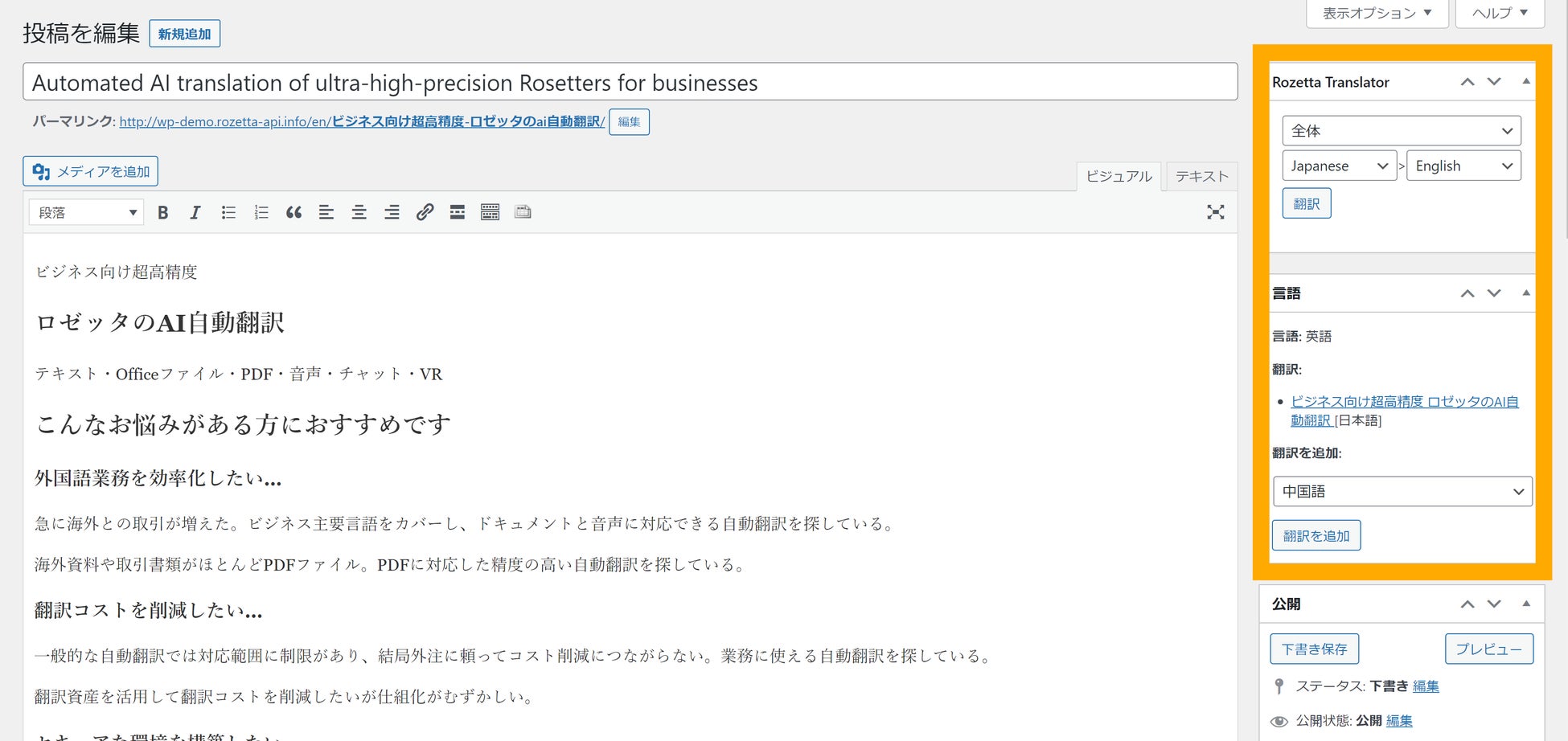 AI自動翻訳のロゼッタ、WordPress翻訳プラグインの提供を開始