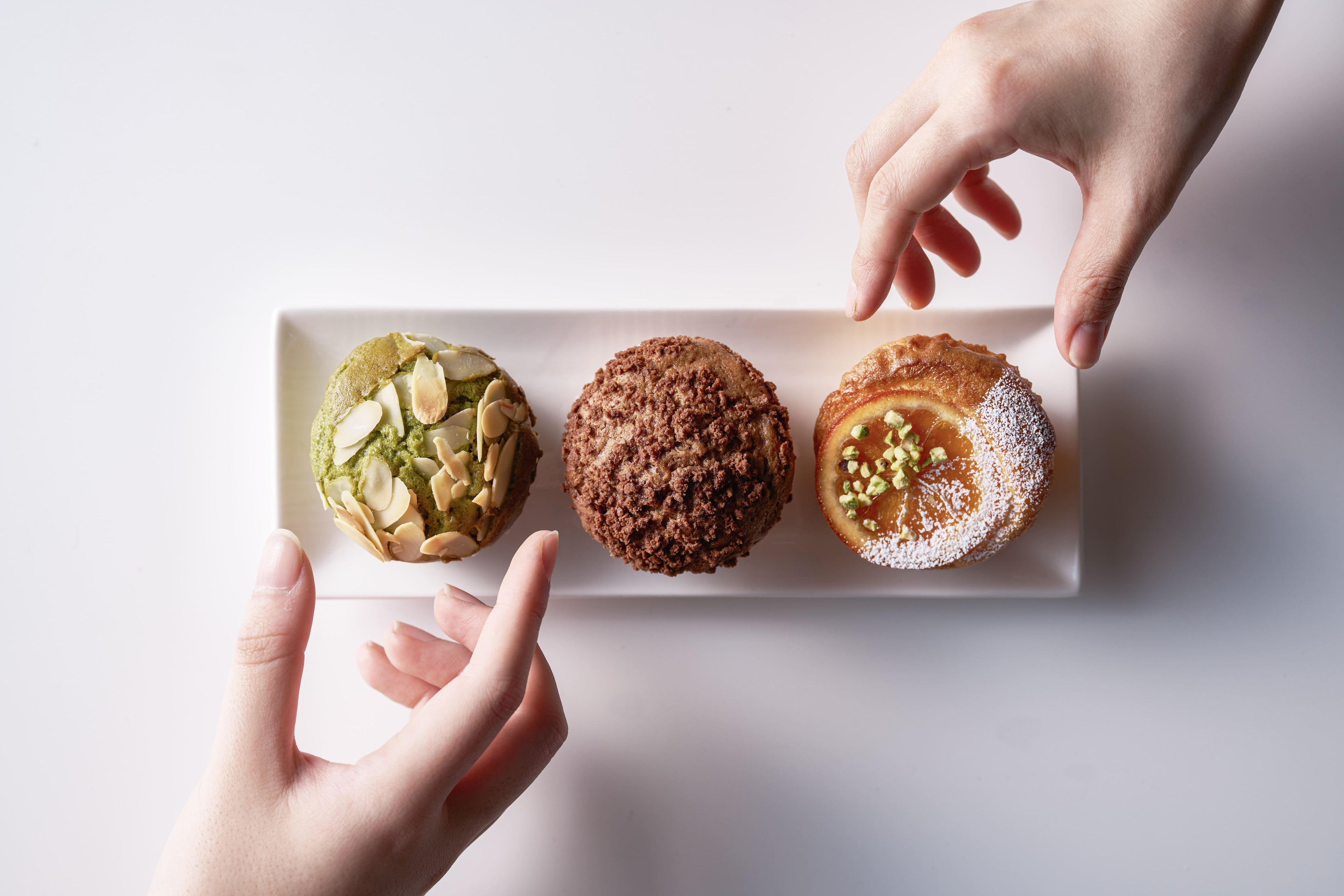 小麦本来のおいしさを活かした素材にこだわった定番のプレーンを始め、人気のブルーベリーチーズやフォンダンショコラをはじめとする約20種類のマフィンをラインアップ。さらに、マフィンズでは、ここでしか手に入らない限定フレーバーもご用意しています。おやつにピッタリのほどよい甘さのマフィンから、朝食や昼食にもおすすめのおかず系マフィンまで、様々なバリエーションが揃っています。ぜひご賞味ください。