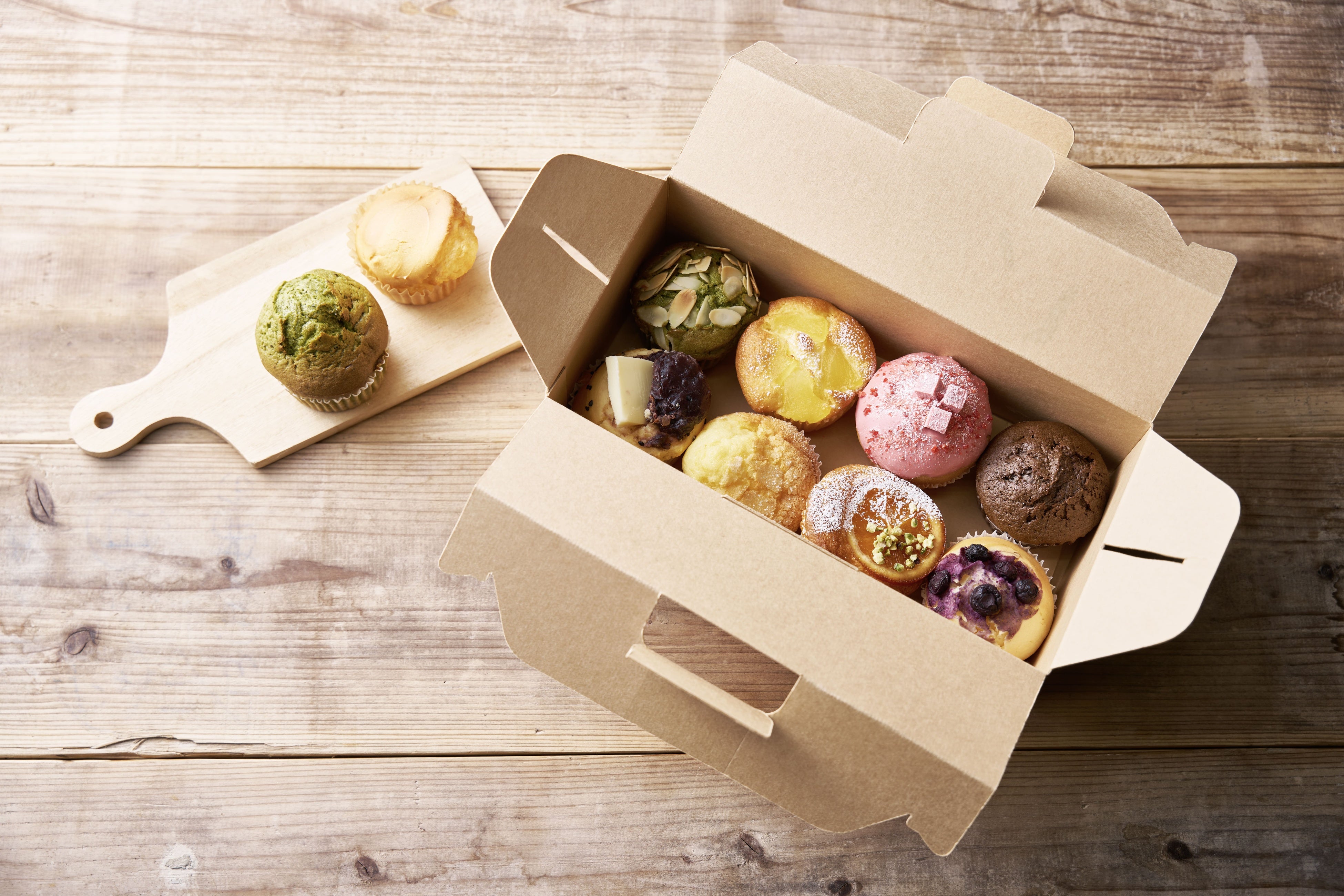 1号店はテイクアウト専用で、京王線府中駅南口から徒歩1分の商業施設「専門店街フォーリス」1階に4月8日(火)にオープン。今だけ、ここだけの限定商品を含む約20種類の遊び心ある個性豊かなマフィンをラインアップしました。