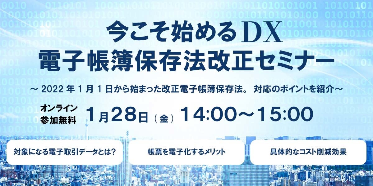 好評のため第2回目開催【今こそ始めるDX!電子帳簿保存法改正オンラインセミナー】《1/28(金)14:00》
