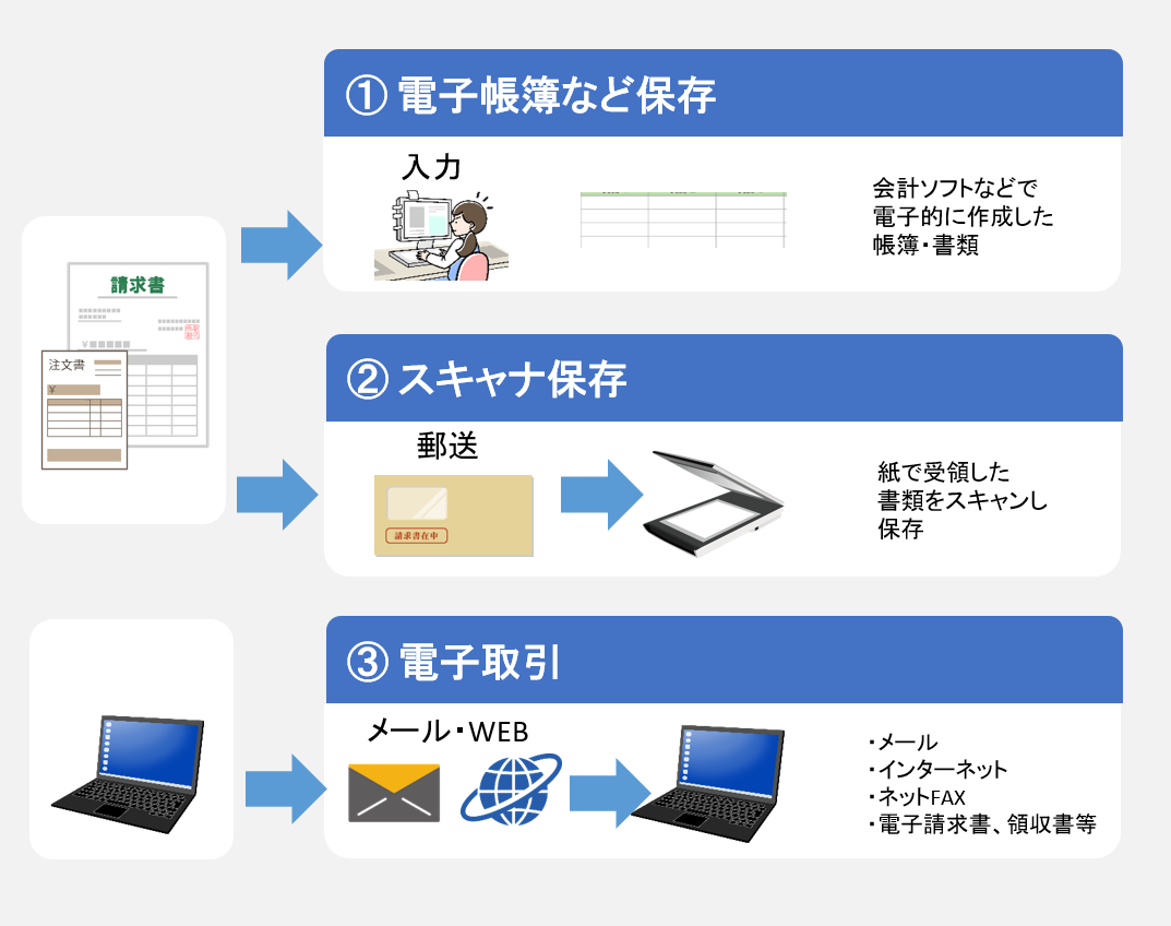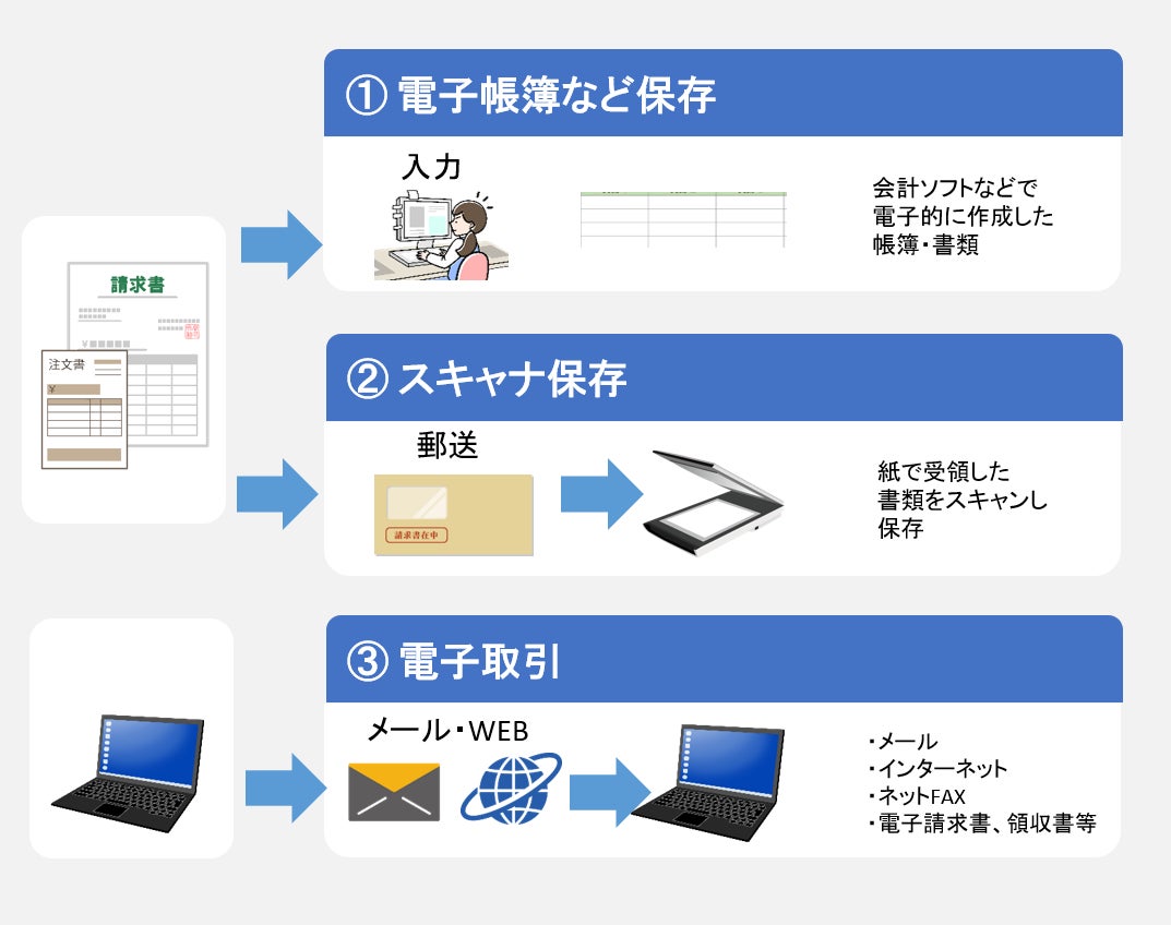 国税に関する帳簿、書類について一定の要件を満たすことで電磁的記録(電子データ)による保存を可能とすることを定めた法律です。