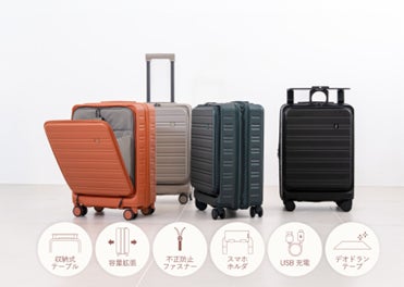 同シリーズは「どこでも机が生まれる」特許構造を採用し、空港や新幹線、ホテルの待ち時間を快適に過ごせる“テーブル付きスーツケース”として登場しました。