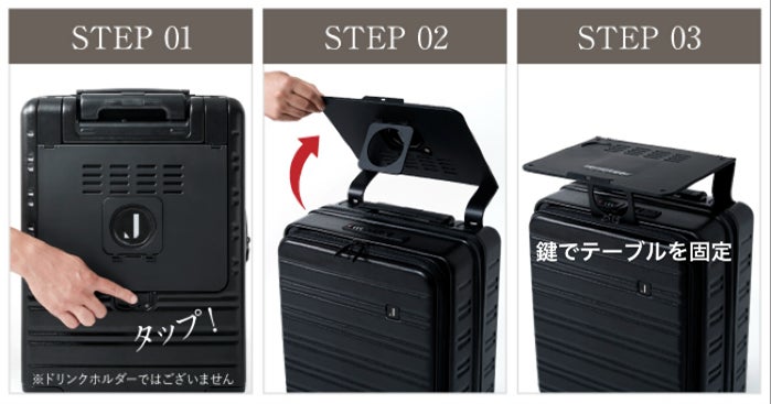 【1】どこでも机が生まれる“テーブル付きスーツケース”