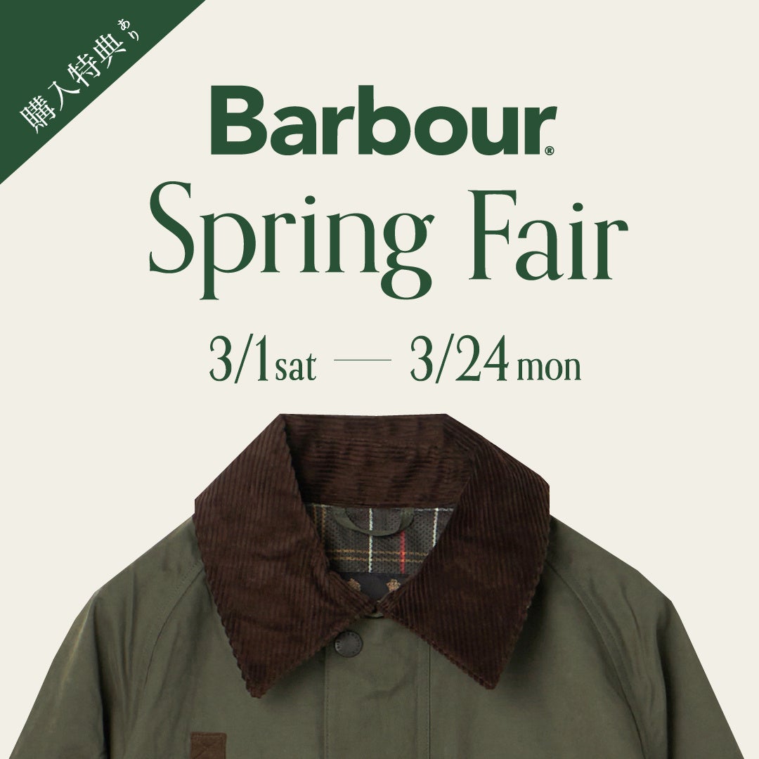 クラシックなデザインと実用的なディテールで愛され続ける、英国の老舗ブランド「Barbour(バブアー)」。ブリティッシュメイドでは、3月1日(土)〜3月24日(月)の期間中、通常取り扱いのないモデルやカラー、豊富なサイズバリエーションを揃えた「バブアースプリングフェア」を開催致します。さらに、フェア期間中に対象商品をご購入いただいた方には、ノベルティをプレゼント。時代に左右されない“一生ものアウター”を、この機会にぜひ。