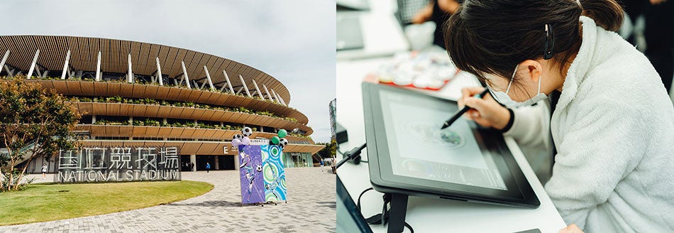 国立競技場開催の“新宿の日”をHAL東京が全力サポート!プロ仕様のペンタブでイラスト体験&オリジナル缶バッジ作りを実施