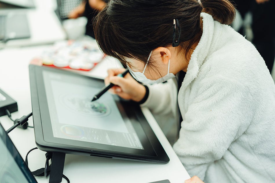 ペンタブレットでのイラスト制作をはじめ、プロ仕様の制作・開発環境を体験することができます。