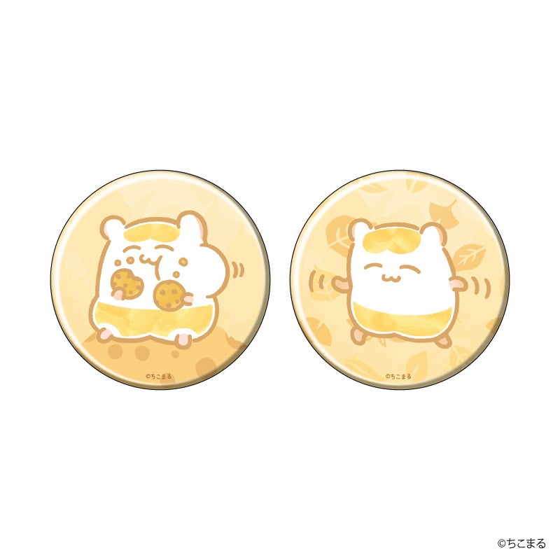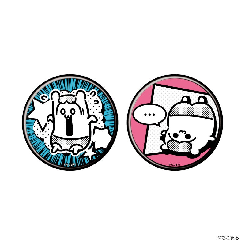 缶バッジは2個セットで、ちこまるの笑顔にこちらまで目を細めてしまいそうになるデザインと、驚いている&ひっくり返っているちこまるを描いたコミック風デザインの2種類。