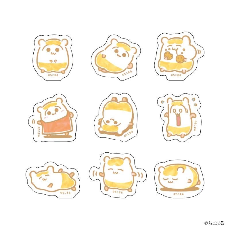 およそ4cm×4cm以内のフレークシールは、ひとつのグッズで9種類のちこまるのデザインが楽しめるお得なグッズです♪