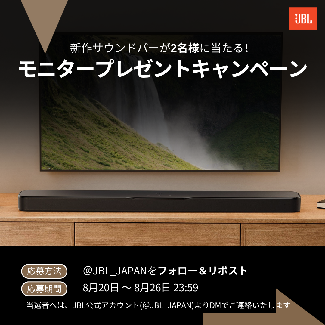 ■タイトル:JBL人気サウンドバーが2名様に当たる!モニタープレゼントキャンペーン