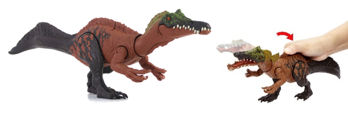 背中のスイッチを左右に動かすとほえるアクションフィギュアシリーズです。スイッチを動かす幅によって、恐竜の動きも変化します。リアルな見た目とサウンドで様々なバトルアクションが楽しめます。フィギュアと連動する無料アプリ「ジュラシック・ワールド・ファクト -恐竜をもっと知ろう!」に対応しております。