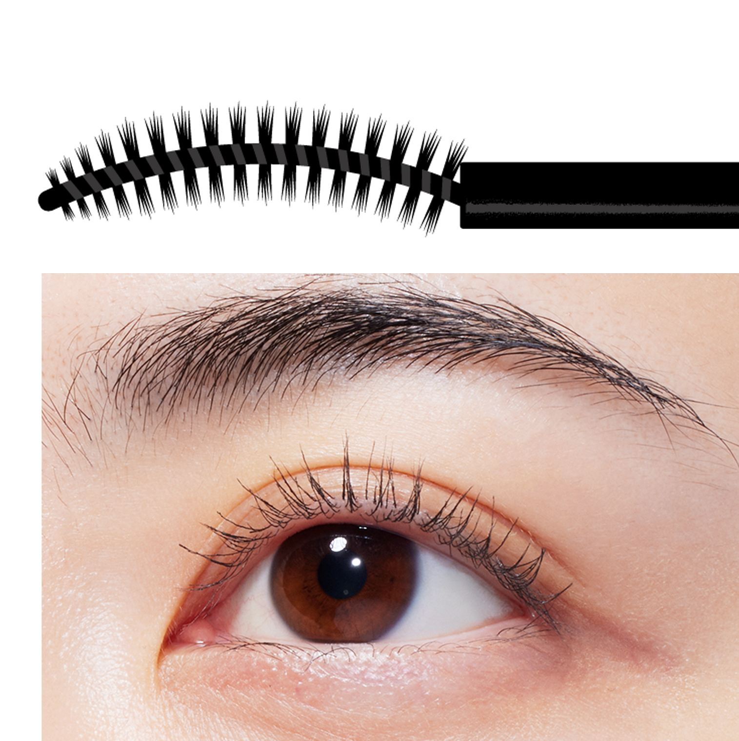 とかしやすく小回りがきく、スマートセパレートブラシを採用。先端が細く、カーブの角度にこだわったアーチ形状で、上まつ毛はもちろん、細くて短いまつ毛や下まつ毛にも塗りやすいブラシです。塗り重ねてもダマにならず、キレイなセパレートまつ毛を叶えます。