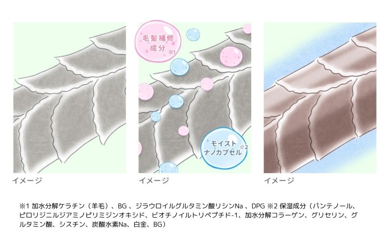 ※2 保湿成分(パンテノール、ピロリジニルジアミノピリミジンオキシド、ビオチノイルトリペプチド-1、加水分解コラーゲン、グリセリン、グルタミン酸、シスチン、炭酸水素Na、白金、BG)"